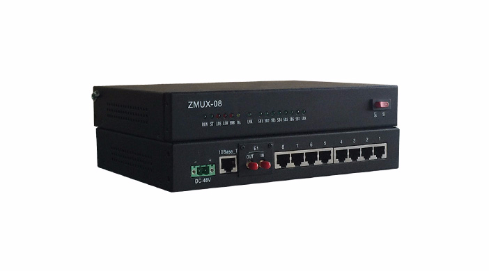 ZMUX-08E是一款小型化、桌面型PCM設備,主要完成電話、音頻、數據、圖像等多業務接入,通過復用到1路E1線路傳輸,實現多業務信號點對點通信功能。