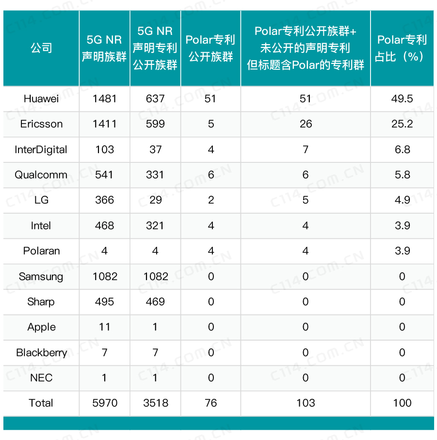 目前,5G Polar碼公布專利數(shù)量上,華為位列第一名,遠(yuǎn)遠(yuǎn)領(lǐng)先于高通。網(wǎng)絡(luò)上流傳了一份有關(guān)5G專利的數(shù)量清單。該份清單是以Polar碼為標(biāo)準(zhǔn)的專利技術(shù)。5G專利清單的詳細(xì)情況如下,截至2018年7月底,Polar碼技術(shù)領(lǐng)域共有103族專利,其中華為占據(jù)半壁江山,擁有51族專利,占比49.5%;愛(ài)立信位居第二,擁有26族,占總數(shù)的25.2%,美國(guó)Inter Digital公司以7族6.8%的占比位列第三。華為能有這樣的專利規(guī)模和占比確實(shí)是令人振奮。然而,3GPP(第三代合作伙伴計(jì)劃)定義了5G三大場(chǎng)景:eMBB,mMTC和URLLC。eMBB對(duì)應(yīng)的是3D/超高清視頻等大流量移動(dòng)寬帶業(yè)務(wù),mMTC對(duì)應(yīng)的是大規(guī)模物聯(lián)網(wǎng)業(yè)務(wù),而URLLC對(duì)應(yīng)的是如無(wú)人駕駛、工業(yè)自動(dòng)化等需要低時(shí)延高可靠連接的業(yè)務(wù)。在5G eMBB場(chǎng)景上,Polar為信令信道編碼方案,LDPC碼為數(shù)據(jù)信道編碼方案,這兩者基本上平分秋色。這就是說(shuō),在eMBB的單場(chǎng)景下,華為占據(jù)較多的Polar碼專利。至于華為的LDPC編碼(高通主導(dǎo)的編碼技術(shù))的專利數(shù)量,有網(wǎng)絡(luò)數(shù)據(jù)顯示為41項(xiàng),相較國(guó)外廠商特別是高通等并不占優(yōu)勢(shì)。另外,我們目前無(wú)法獲知華為和中興在5G其他兩大場(chǎng)景下的專利情況。當(dāng)然,這一方面既需要3GPP先定mMTC和URLLC的編碼方案,另外一方面也需要國(guó)內(nèi)的中興和華為能夠繼續(xù)在mMTC和URLLC場(chǎng)景專利上實(shí)現(xiàn)大的突破。另外,有網(wǎng)絡(luò)公開(kāi)數(shù)據(jù)顯示,華為擁有的5G核心專利占比大約為26%,專利占比高居各廠商榜首。但是對(duì)于26%的專利占比數(shù)據(jù),我們無(wú)法證實(shí)。